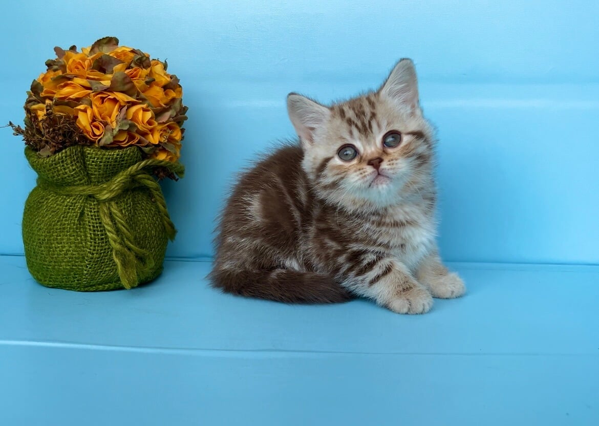 Meet Winelle—a truly heart-stealing beauty with a coat as enchanting as a woodland dream and eyes that gleam soft emerald green. From the first gentle purr to the warmth of her chocolate tabby fur nestled in your hands, Winelle will bring comfort and joy to every touch and cuddle.