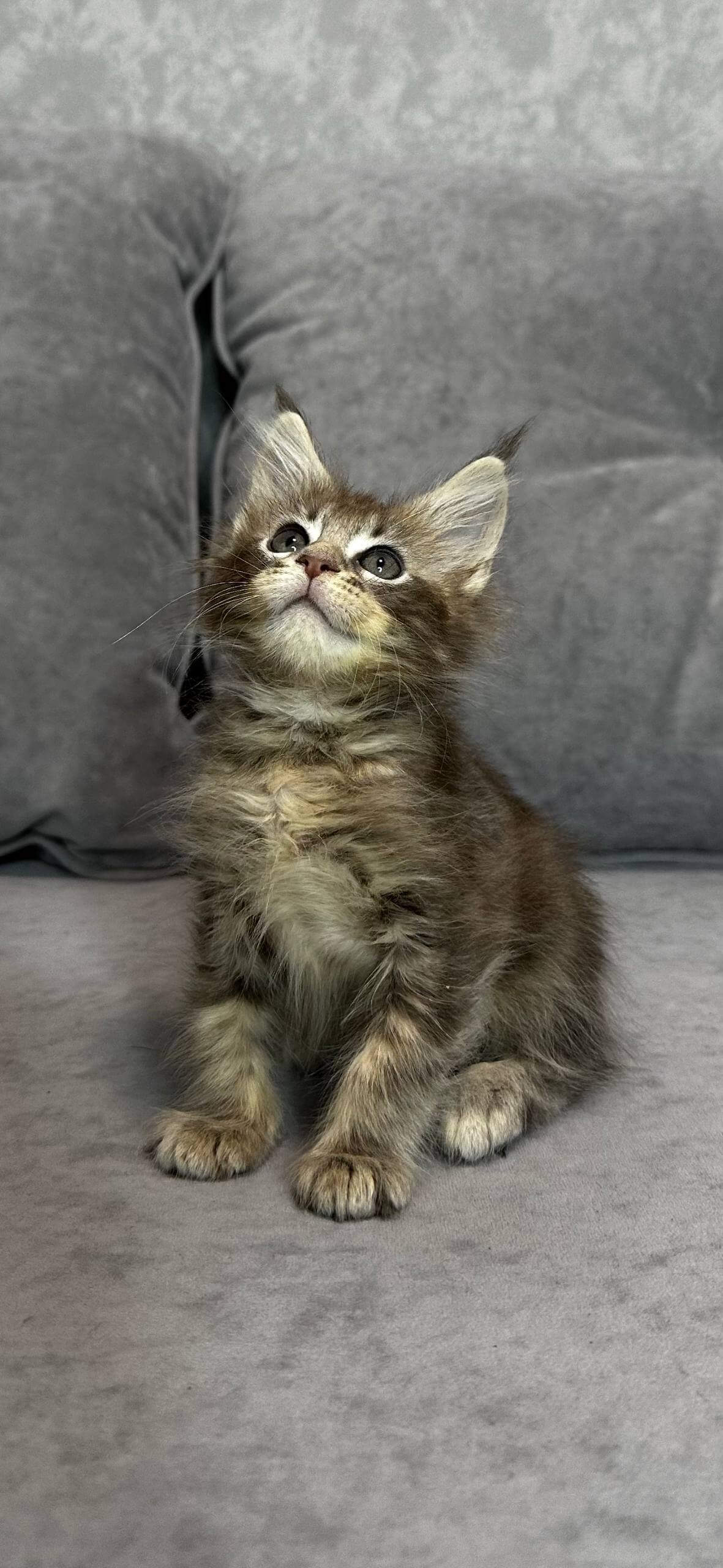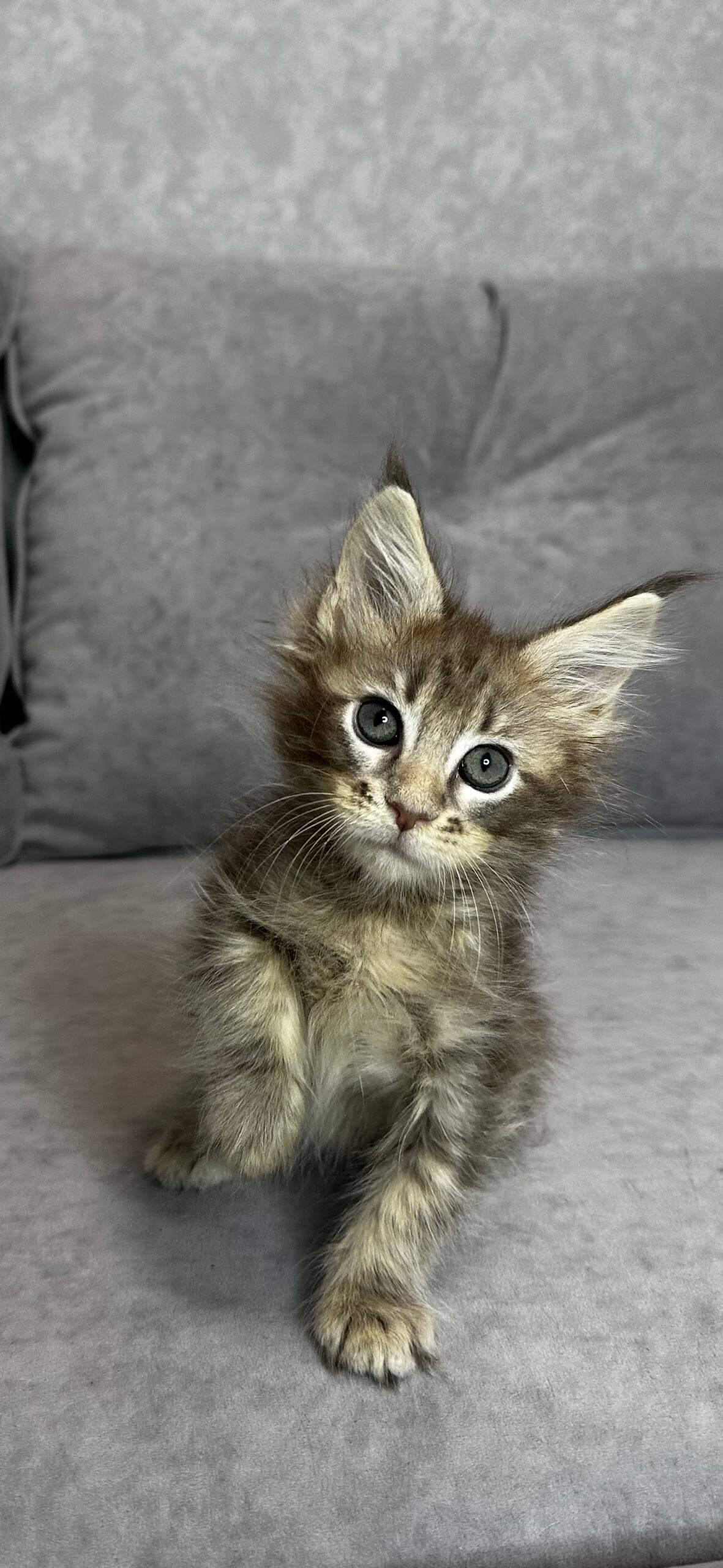 Meet Wiskey, your new daydream come true — a blue tabby blotched princess with striking yellow eyes that melt your heart in a single glance. Imagine gentle paws padding into your lap, soft purrs vibrating sweetly as she gazes up with an endless promise of loyal companionship.