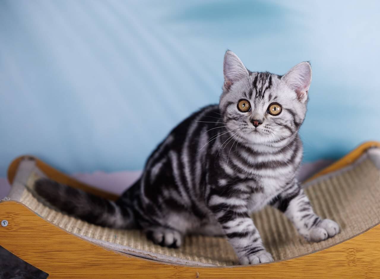 Meet Xan – a heart-stealer with his velvety black silver tabby coat and soulful yellow eyes that gleam with gentle wonder. Imagine running your fingers through his plush fur as he nuzzles softly against your hand, purring his sweet hello. Xan, our delightful Scottish Fold boy, promises endless moments of warmth and playful pounces at your side.