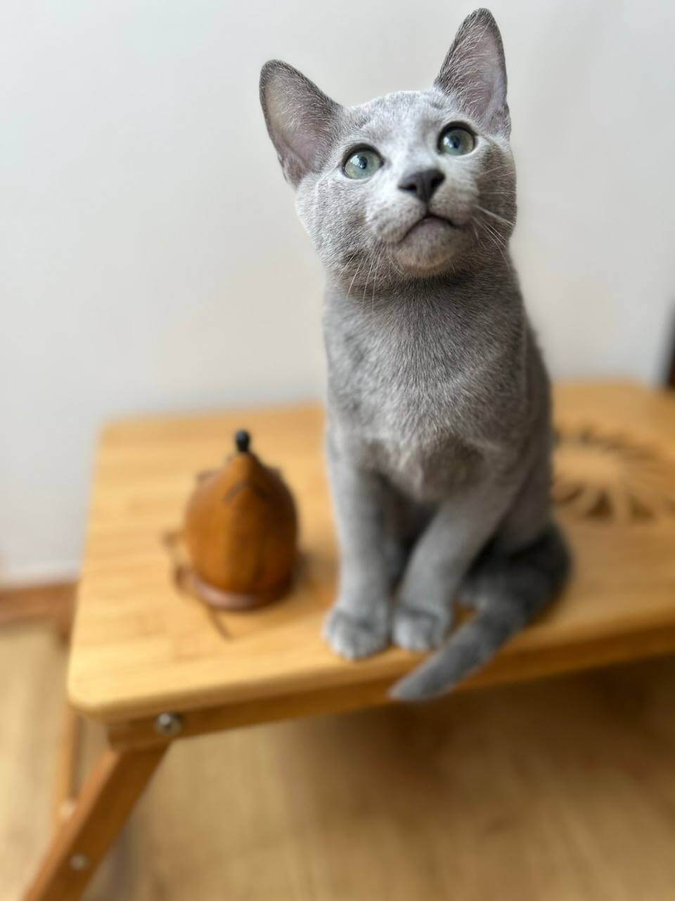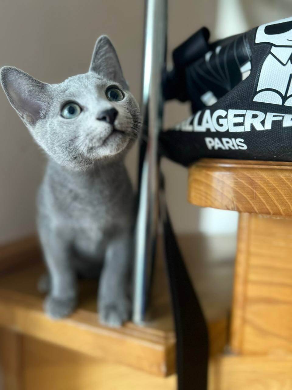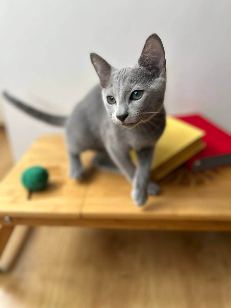 Let your heart melt the moment you gaze into Yan’s enchanting, emerald-green eyes. This precious Russian Blue boy, born June 29th, 2025, radiates quiet elegance with a silken blue coat and the softest, calm purrs that promise endless cozy evenings.