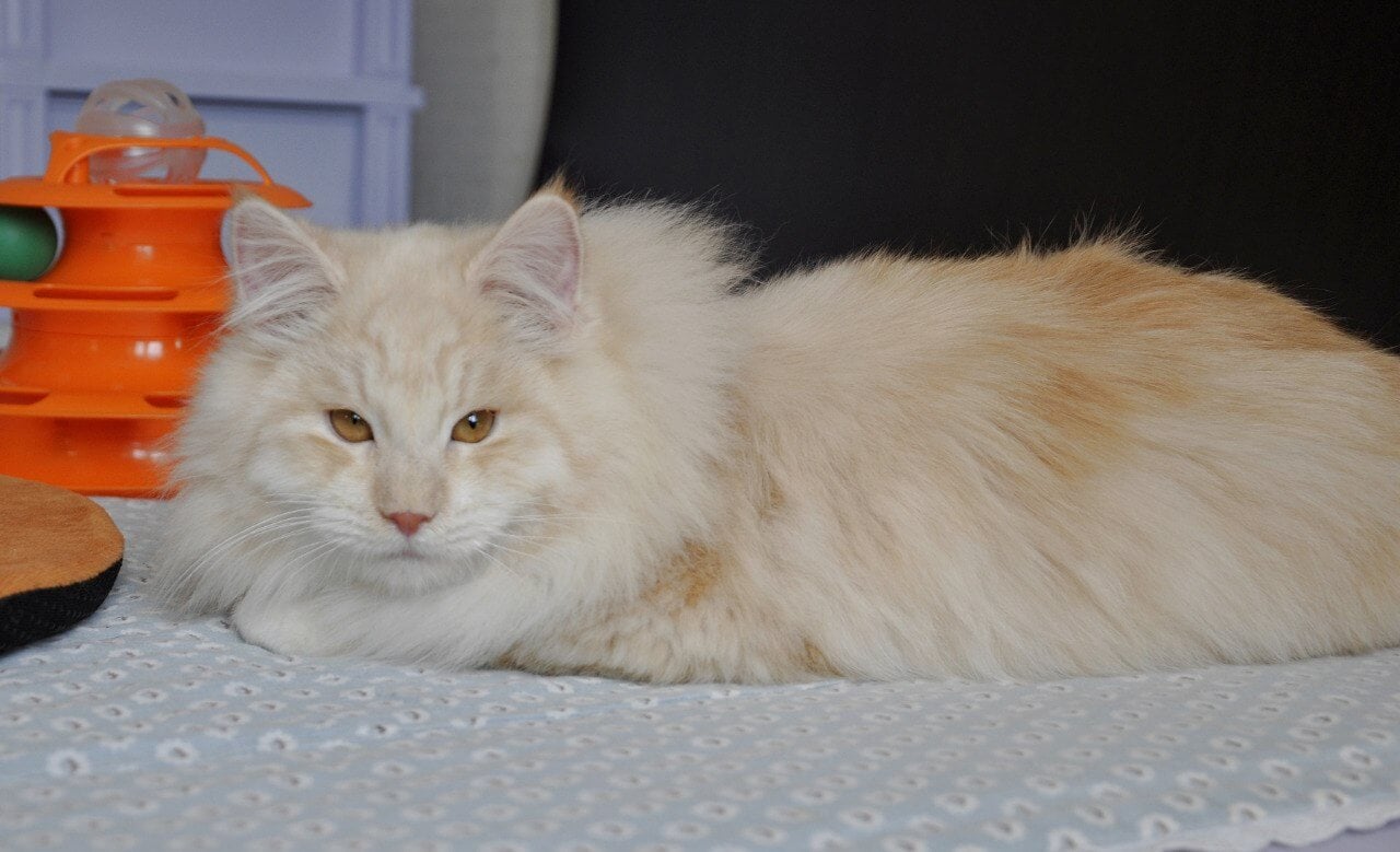 Meet Yerik – a gentle ray of sunshine ready to fill your home with warmth and soft purrs. With his creamy-white fur and sparkling orange eyes, Yerik is a show-quality treasure who loves cuddles and gentle strokes, melting into your arms with every touch.