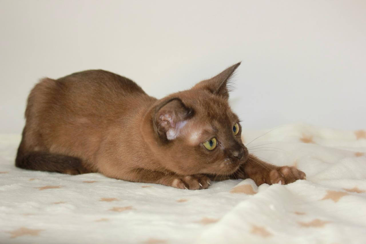 When you meet Yvette, your fingertips immediately notice the lush, close-lying Sable coat—a hallmark of a true Sable Burmese kitten. The gentle weight of her petite body settles in your arms, her gaze meeting yours with striking yellow eyes that shimmer in the light, radiating purity and depth as she purrs softly beside you.