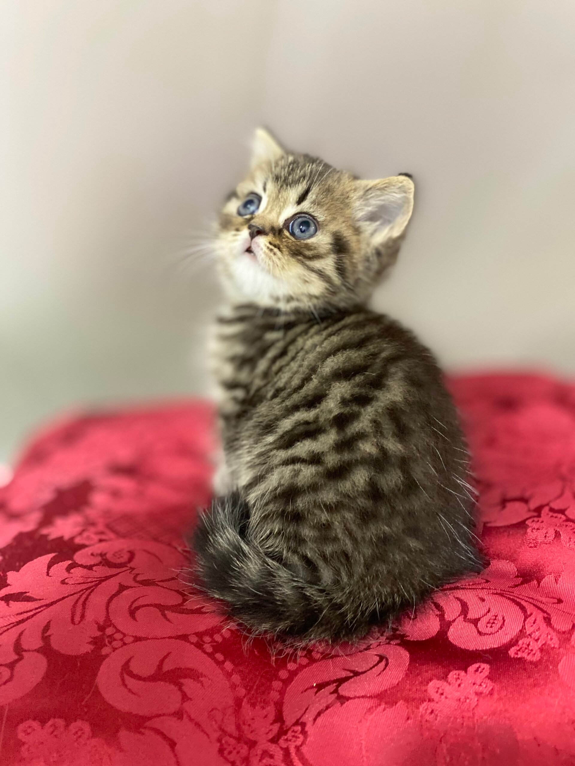 Zack’s show-quality elegance shines in every dappled mark of his glossy coat, but it’s his loving, playful spirit that makes him truly unforgettable. He adores gentle shoulder nuzzles, playful pounces at feather toys, and will melt into your arms the moment you scoop him up. Affectionate and beautifully socialized, Zack is already litter trained and used to soft wood pellets or clumping litter for effortless care.