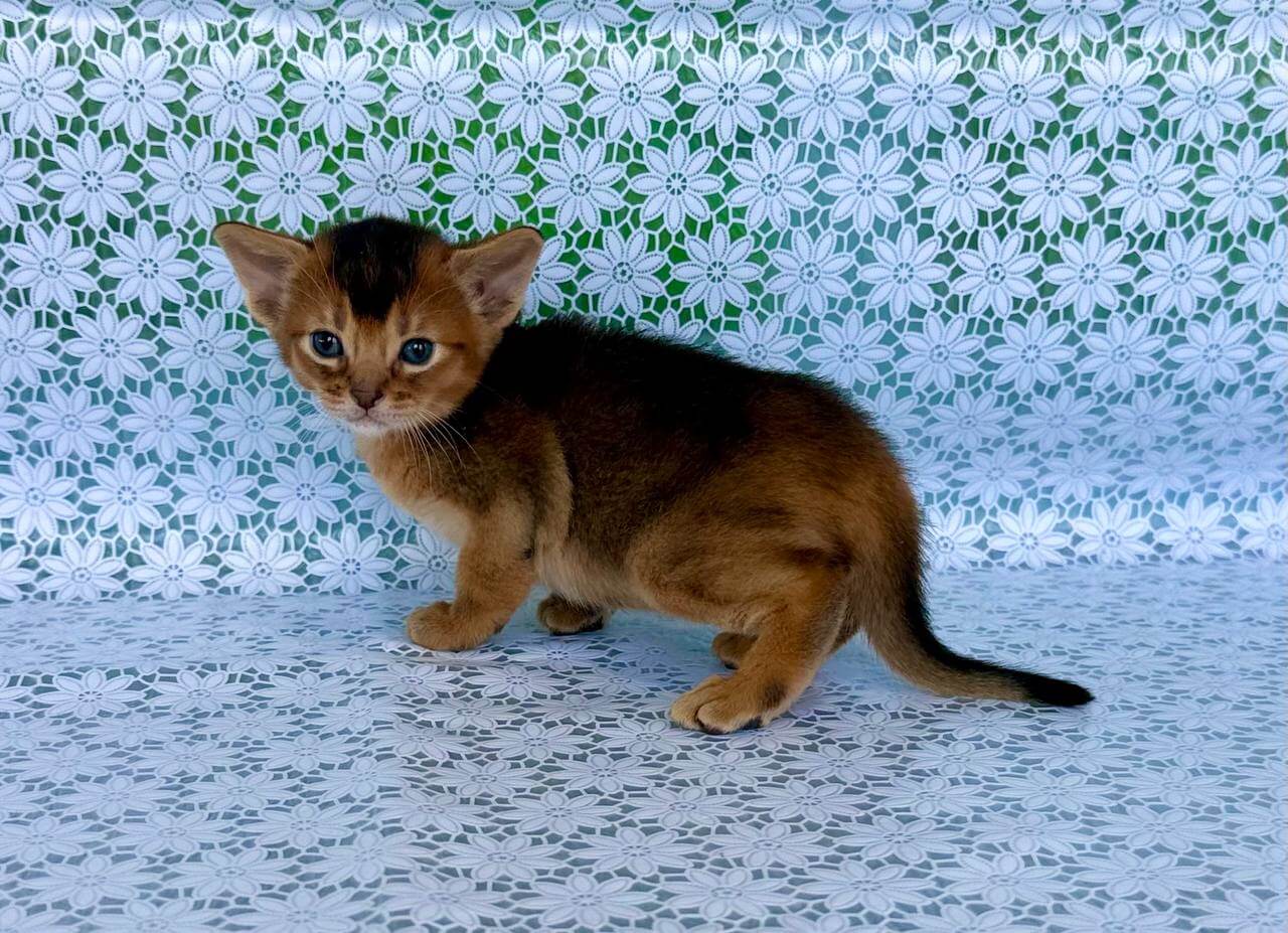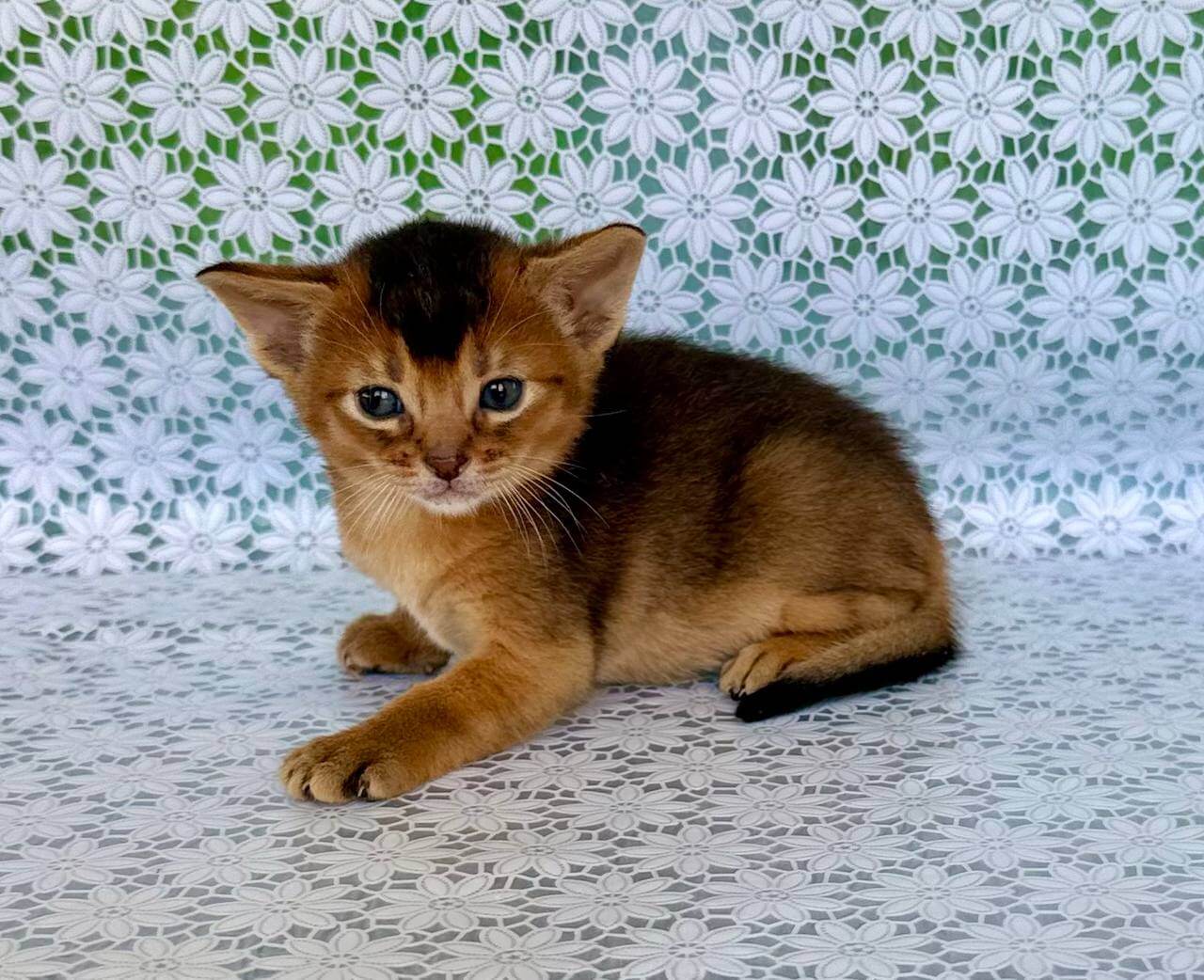 Show quality and bred from champion Abyssinian bloodlines, Zagar is WCF registered and demonstrates both elegance and vitality. He is already fully socialized with people and pets, vet-checked, vaccinated, and uses wood pellet litter like a pro. Your comfort matters—enjoy 7-day support for questions after you bring him home, ensuring the smoothest possible transition.