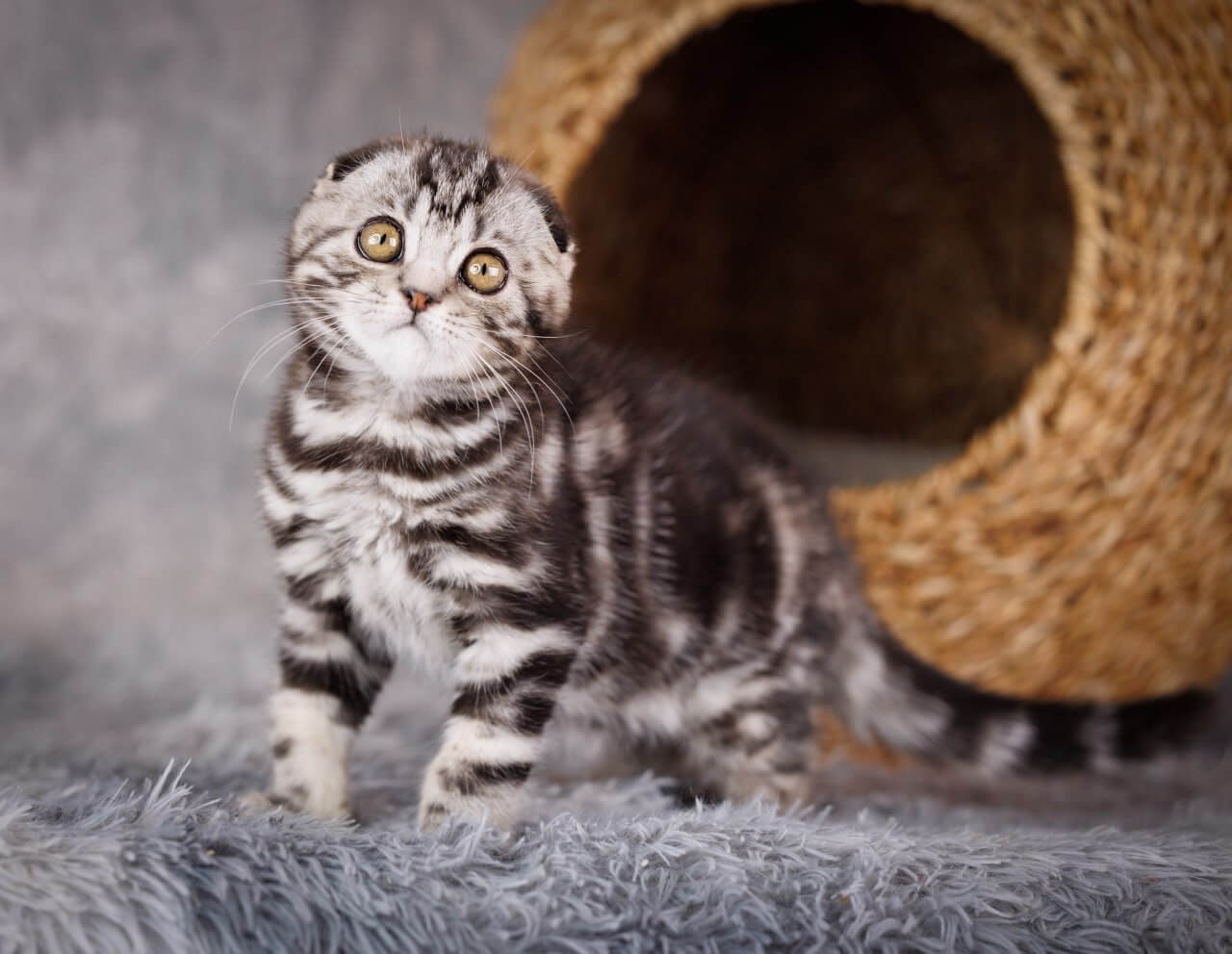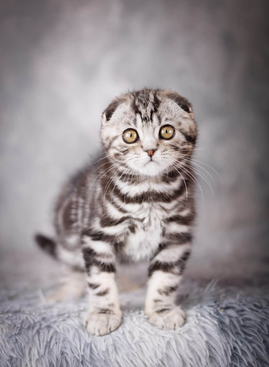 With his plush, silvery stripes and enchanting yellow eyes, Zeus is everything you dream of in a Scottish Fold. Imagine the gentle brush of his velvety fur against your palm as he nuzzles close, his soft purrs filling your home with warmth and joy. Every cuddle feels like a little miracle.