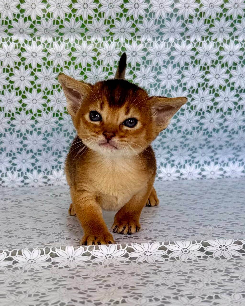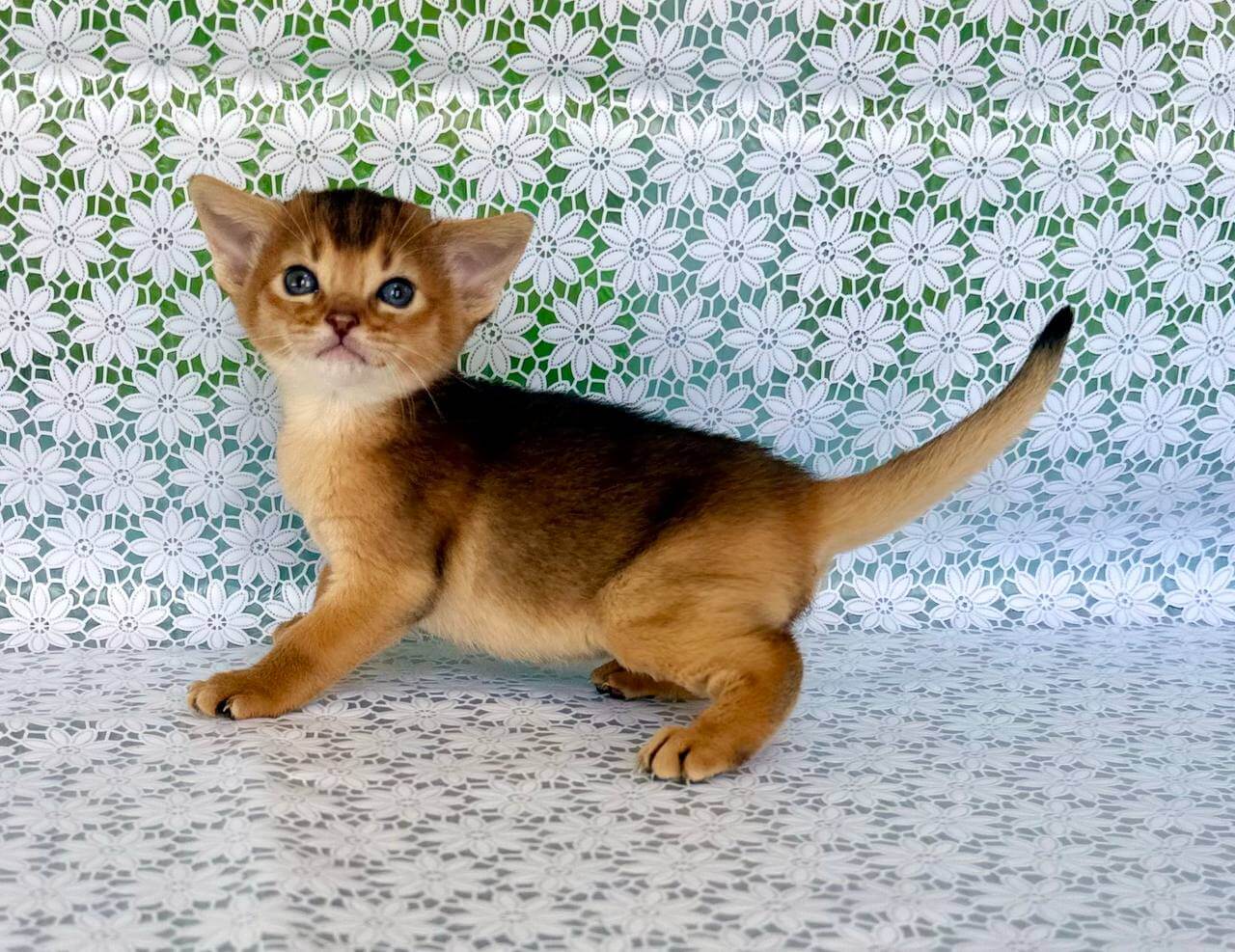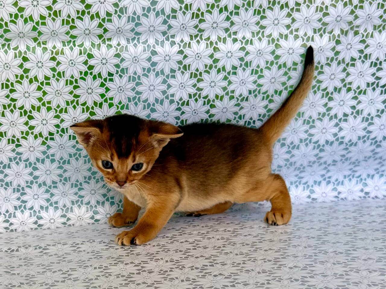 Zhaklin’s clever, social nature is pure delight. Abyssinians are known for their curiosity, and she greets you with gentle chirrups—her way of inviting you to join in her explorations. At night, she settles close, touching your arm with a quiet purr until she’s sure you’re asleep. During the day, watch her leap and arch, chasing sunbeams with the athletic grace of her breed.