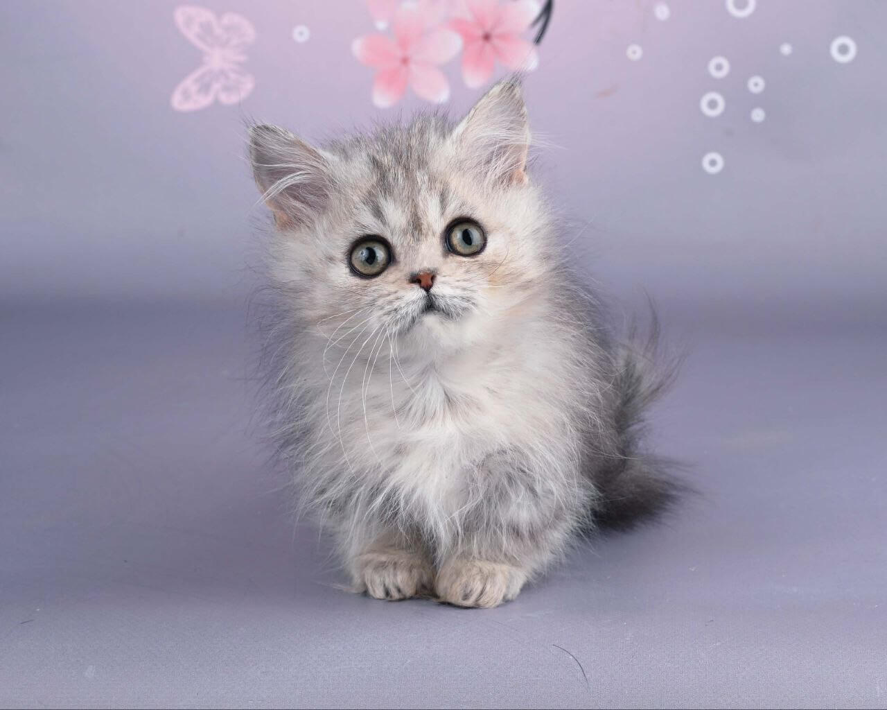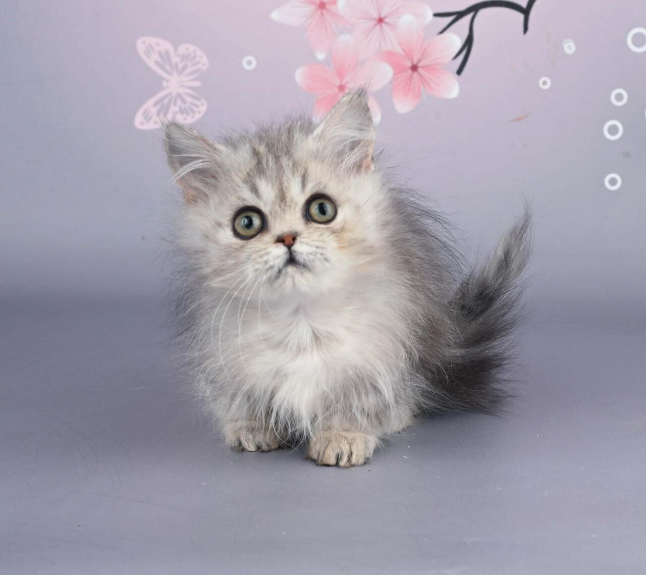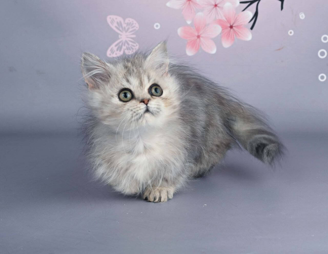 From the moment Zoie opens her emerald-green eyes, you’ll feel the gentle magic she brings into any room. This Blue Silver Tabby Blotched beauty wraps you in warmth with the velvet touch of her plush fur and the sweet rumble of her purrs—she’s a kitten made for loving cuddles and serene, purring afternoons.
